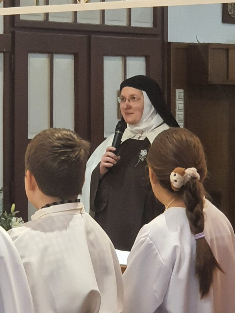 No, i jedne i druge okupila je naša Majka i Kraljica Karmela pred čijim su se likom sabrale. I dok su pozorno pratile otvaranje rešetke i dolazak sestara, o. Grizelj ih je upoznao sa znamenitostima naše crkve, a posebno se zaustavio kod oltara sv. Male Terezije i govorio im je o njezinom duhovnom putu, o teškoćama na tom putu, kao i ulasku u Karmel gdje se posebno molila za svećenike, ali i za cijeli svijet. Zatim je naglasio da dragi Bog ne može odbiti molitve takvih duša jer je njihov život satkan od žrtava kojima su natopljene njihove molitve.